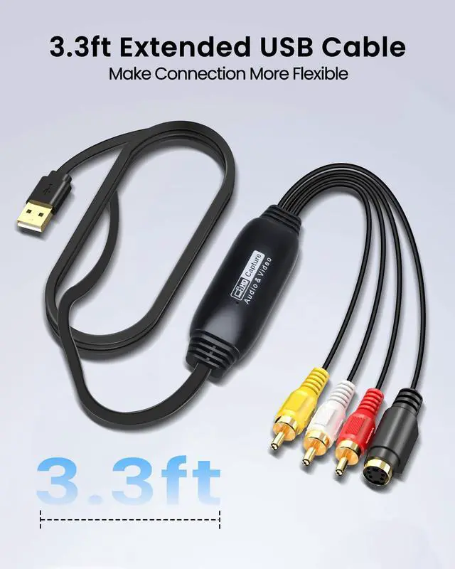 Wide Compatibility: Compatible with Windows and MacOS operating systems and supporting video capture software such as OBS, Potplayer, etc., this RCA to USB Capture Card is ideal for video production, screen recording and other scenarios.