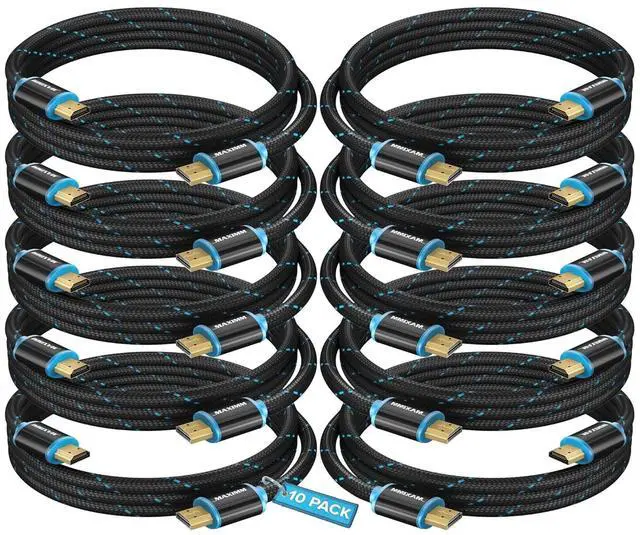 4K HDMI Cable Pack by Maximm is crafted with triple shielded 32AWG copper conductors with gold-plated connectors ensuring premium high-speed and flawless 4K Ultra HD technology signal transmission and best image qualityMonitor HDMI cable supports resolution up to 3840 x 2160 @ 60 Hz 4K video 3D and multiple view full HD 1080p HDR enjoy crystal-clear TV with deep colors and high-resolution images to get the best visual experience of ultra-high definition with cinema-like sound via Dolby ARC devicesBraided HDMI cable bundle nylon material for nice aesthetic look and added durability and flexibility that will not easily tangle providing longer bending life and extra shielding that minimizes interference and signal noiseInwall HDMI cable 4k tested and certified to be compatible with HDMI 2.0 devices like HD TV computer monitor audio devices gaming consoles laptops projector and backwards compatible with previous HDMI 1.4 1.3 & 1.2.