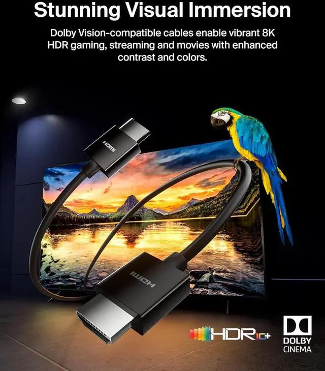 DOLBY VISION: From improving each pixel to unmatched brightness contrast and color the Ultra HD HDMI 2.1 Cable will change the way you experience watching Netflix Apple TV Fire TV and more.