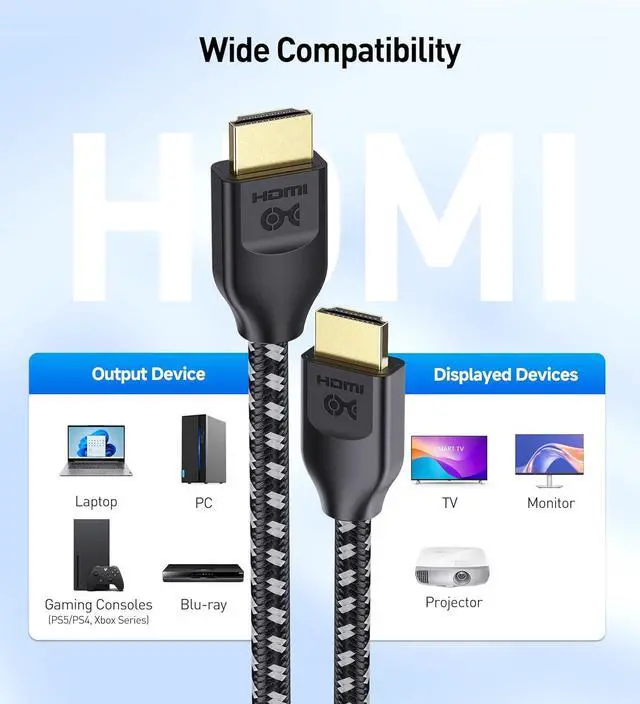 8K HDMI CABLE supports high bandwidth HDR with a 48 Gbps bandwidth as specified in HDMI 2.1 standard; The 8K HDMI cord offers more than 2x the HDMI 2 and HDMI 2.0 b bandwidth of existing 4K HDMI cable and HDMI 4K Ultra HD cable; HDCP 2.2 HDMI cable supports a 21:9 cinema aspect ratio HDCP 2.2 32 audio channels and a 1536 KHz sampling rateHigh speed HDMI to HDMI cable supports up to 8K (7680x4320) including 4K and 1080p; Fully compatible with HDMI eARC (Enhanced Audio Return Channel) features for immersive audio support including Dolby Atmos and DTS X surround sound 7.1 and 5.1T he HDMI 8K cable supports gaming consoles such as the PS4 PRO and Xbox One with advanced features; Enjoy the ultimate video streaming experience with Apple TV and Ultra48Gbps HDMI cable is backwards compatible with HDMI 2.0 cable and supports 4:4: 4 RGB HDR 12-bit color and Dolby VisionBraided design of this braided HDMI cable 8K protects it from tangling and fraying; Distinctive look and feel offers a premium experience