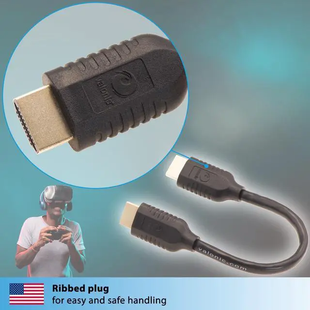 PROCESSING: The short HDMI cord is equipped with gold-plated contacts and is triple shielded.