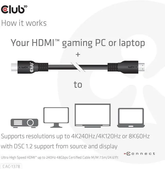 QR code for verificationCOMPATIBILITY: This HDMI cable is compatible with many devices Nvidia RTX 4000 series AMD Radeon RX7900 series Apple TV 4K and other devices that support HDMI 2.1 This HDMI cable comes with cable Velcro straps and the cable outside diameter is 9.7 mm