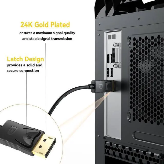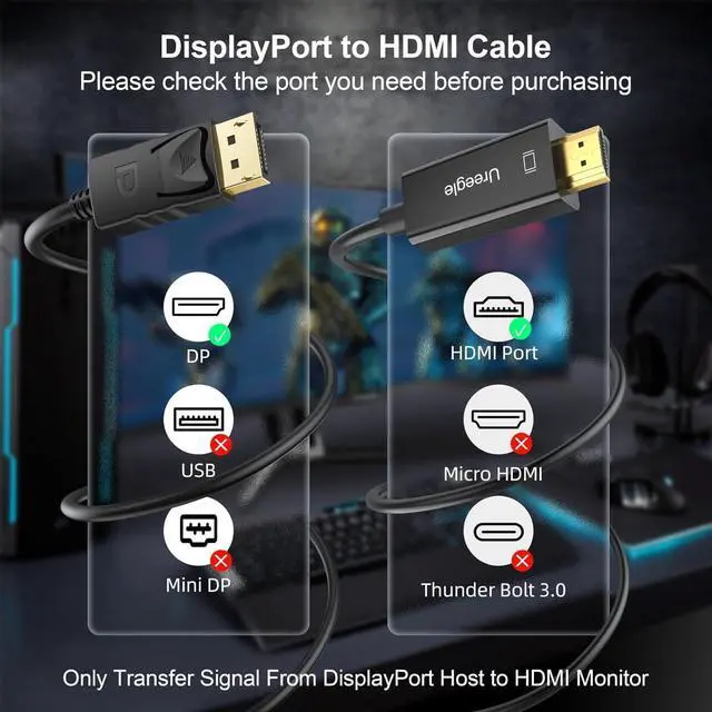 Strong Anti-interference CapabilityOur DisplayPort cable for monitor features gold-plated connectors and a durable PVC outer layer to protect against outside interference which can resist corrosion and abrasion and improve the signal transmission performance. Full HD Video-High PerformanceUreegle Display port to HDMI adapter 6 Feet supports video resolutions up to 1920x1200/1080P (Full HD) and flawless audio pass-thru for uncompressed digital 7.1 5.1 or 2 channels. Make the images and sound quality more full and exquisite without noise. Latch Design for Secure ConnectionDisplay port to HDMI cable with latch provides a secure connection with a release button that must be depressed before unplugging.