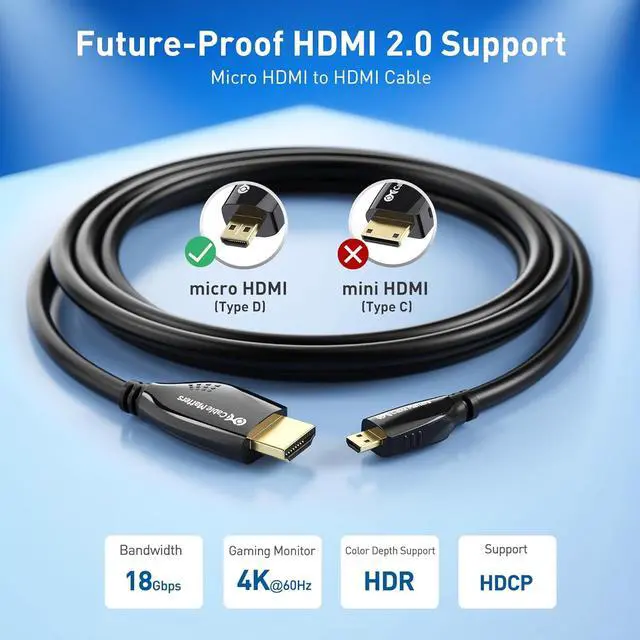 User-Friendly Design: Micro HDMI to HDMI with flexible cable jacket and easy-grip treads on the connectors make the installation easier; Plug & play directly using this HDMI Micro to HDMI cable without connecting any adapters.