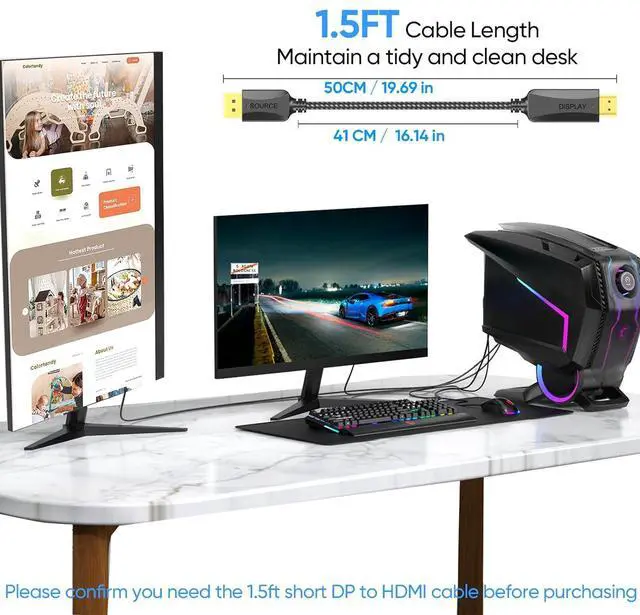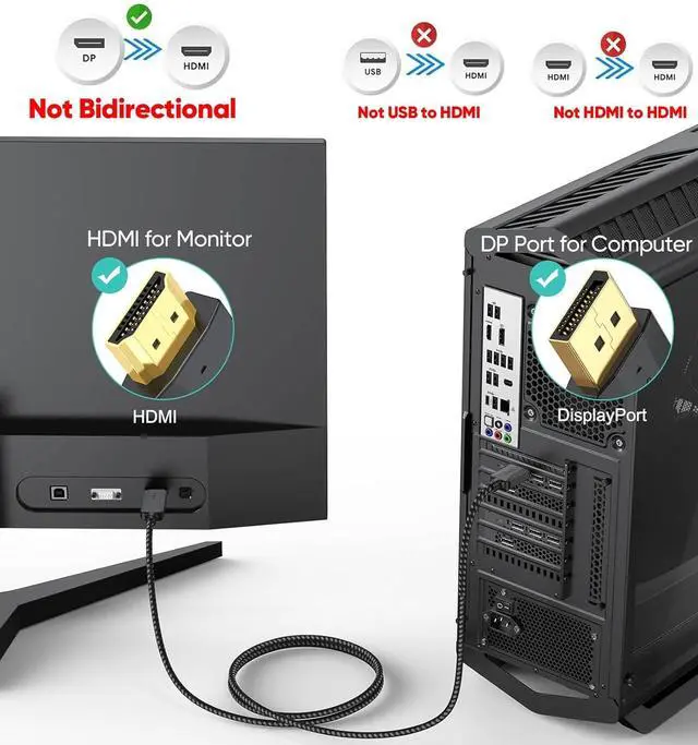 ?? Not Bidirectional Perfect 1.5FT LengthOur Short Displayport to HDMI Cable 1.5 ft is the perfect choice for short-distance setups where space matters! Such as connecting a laptop/desktop with DP Port to a second monitor/TV/Projector with HDMI Port. Whether you're working at your desk presenting in a meeting or streaming at home this compact cable delivers 4K video and audio without the clutter of extra-long cords (?? 1. This is not a bidirectional dp to hdmi cable does not for Computer HDMI to DP Monitor). UHD 4K Video and AudioDisplayPort to HDMI Supports smooth vivid and crisp High-quality HDCP 2.2 3D 4K (3840x2160 Ultra HD) @30Hz 1440p (2560x1440 QHD) @60hz 1080P (1920x1080 Full HD) @60hz and flawless audio pass-thru for uncompressed digital 7.1 5.1 or 2 channels guide You through the engaging realm of streaming audio and video(?? This is a displayport to hdmi video cable.