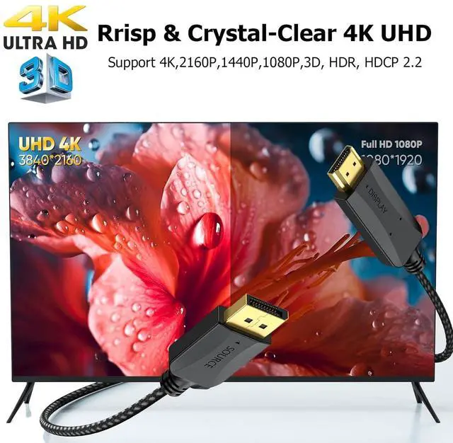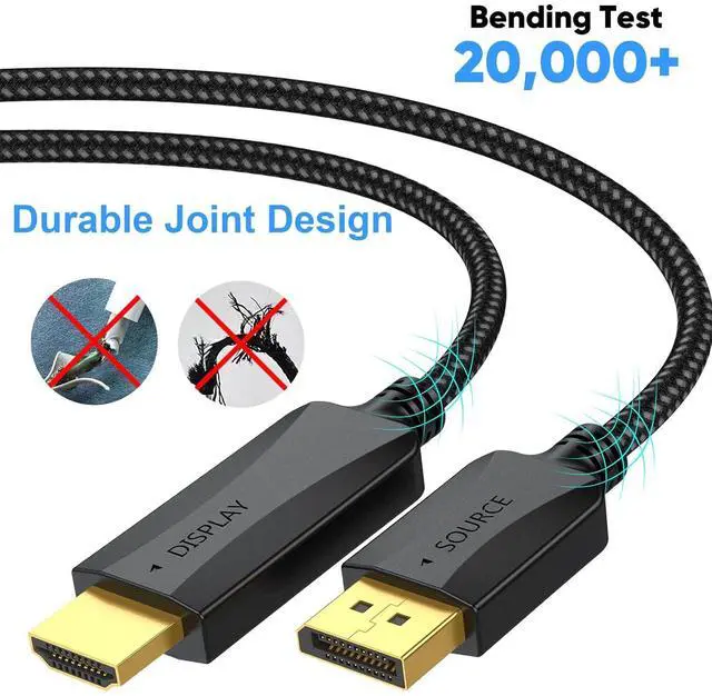 No power charging function). Wide Compatibility and Multi-function This 4K dp to hdmi cable is compatible with desktop PC laptop GPU (AMD NVIDIA) and other devices with a DisplayPort. Connect to TV projector monitor VR headset with HDMI etc. Extended Desktop mode and Mirrored Display mode are make you better entertainment experiences from a small or an old computer to a bigger monitor(?? Not for KVM or Docking Station). Stable Connection24K Gold-plated port Solid bare copper conductors foil & braid double-layer shielding combine together and Gold-plated connectors to provide both superior cable performance and reliable connectivityHigh-end Slim Design and Long LifeTwice Forming Die Casting and fabric braided nylon cable provides you with a heavy-duty Display Port to DisplayPort Cable and effectively prevents cracking.