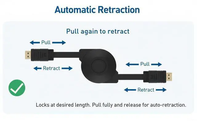Maximum Length: 1.8 m/ 5.9 ft48 Bit Deep Color 32 channel audio Dolby True HD 7.1 audio 3D video and HDCP support. Retractable design helps avoid tangled cables and saves space. Flat firm design for long-lasting usage.