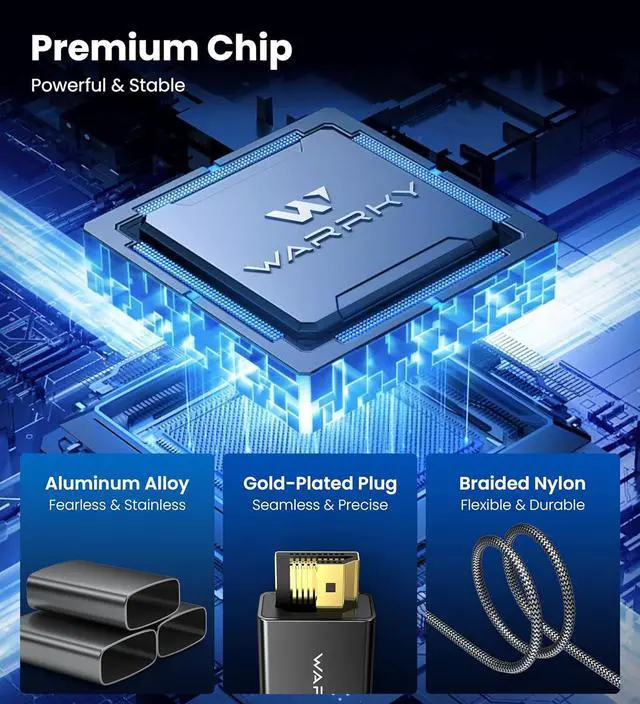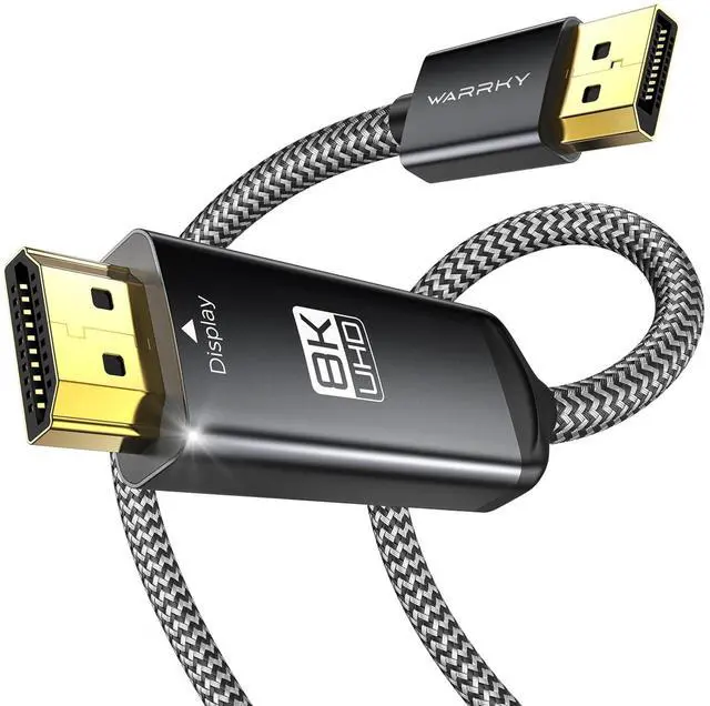 [Unyielding Durability] Crafted with reliability in mind. The WARRKY displayPort to HDMI cable boasts a sturdy nylon braided jacket that withstands the test of time and proves its worth handling over 16 000 bends without compromising flexibility or performance ensuring that it will remain a steadfast companion throughout countless tasks. [Universal Compatibility] This DP to HDMI cable seamlessly connects desktop PCs laptops GPUs (AMD NVIDIA) and any other device equipped with a DisplayPort to TVs projectors monitors VR headsets and more.