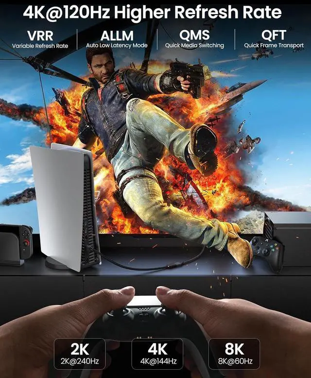 Solve Short Cable FrustrationEasily extend your Fire TV Stick Chromecast PS5 PS4 etc with this HDMI extender cable and protecting your devices ports from wear and fits perfectly behind wall-mounted TVs or in tight setups. Works with all HDMI devices including Blu-Ray player Monitor Laptop HDTV Apple TV Projector Switch Gaming PC. Also competible with HDMI 2.0 / 1.4 gearImmersive Audio-Visual ExperienceAdvanced HDMI extension for immersive home theater. This HDMI 2.1 extension cable supports 8K@60Hz and 4K@120Hz resolution with dynamic HDR and 3D support. Features eARC for high-quality Dolby Atmos audio bringing theater-like sound and visuals into your home (Note: This product is an HDMI Male to Female extension cable designed to extend your current HDMI cable)Next-Level Gaming & Professional PerformanceTake your gaming and productivity to the next level. Featuring 48Gbps bandwidth and up to 120Hz/144Hz refresh rate at 4K resolution this HDMI male to female adapter ensures smooth tear-free gameplay and crisp stable visuals for high-resolution presentations and multitaskingBuilt to Last with Stable SignalNylon braiding and double-layer fishnet winding resist tangles and damage. 24K gold-plated connectors prevent corrosion while triple shielding and 28AWG copper core eliminate interference for less screen flickering or white dots more flawless videosServices you will also getOriginated from confidence in product quality. Available in 1.6FT / 3.3FT /5FT/ 6.6FT /10FT lengths to fit your space perfectly. All costs covered during 2-year service of replacement process of this HDMI to HDMI extender. Please contact us if you have any question friendly and prompt supports will be offered within 18 hours