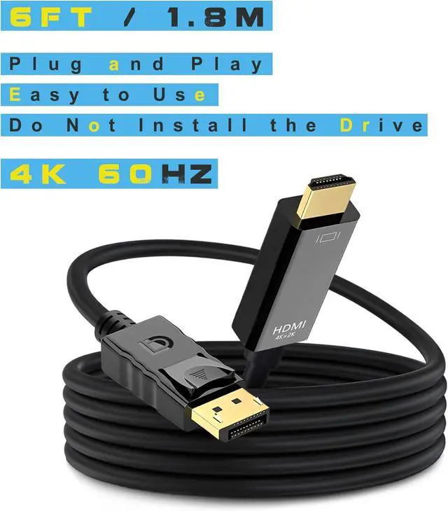 Performance: The Display port to HDMI cable supports up to 4K 60Hz (3840 x 2160) resolution and is backward compatible with 2K 60Hz (2560x1440p) 1920x1080p 120HzEasy to