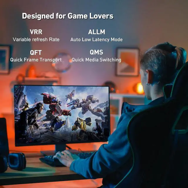 HDMI Cable For Game Enthusiasts This HDMI Cable is not limited to 4K@60Hz it can break through 4K and achieve 8K ultra-high image quality. It can also achieve a super smooth picture of 4K@240Hz. Its latest game mode supports variable refresh rate maximizes the value of the graphics card and CPU and is more accurate in the processing of rendered images. When the scene is switched the refresh rate will change accordingly to obtain a smoother and more detailed picture.