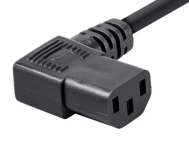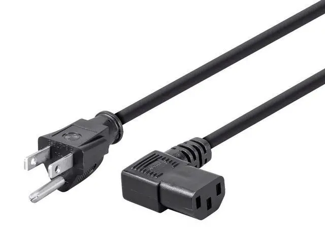 3ft 14AWG Right Angle Power Cord Cable w/ 3 Conductor PC Power Connector Socket (C13/5-15P) - Black