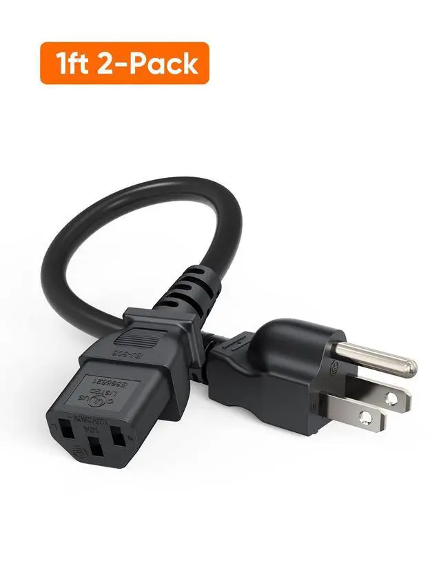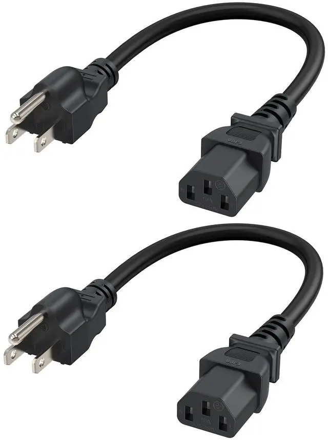 Short cord for a surge suppressor with a C13 input; Rated to carry: 125V at 10A with a standard grounded power plug and 3-pin shrouded female IEC-320-C13 connector.
