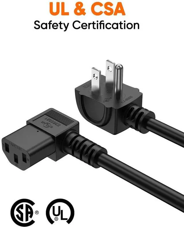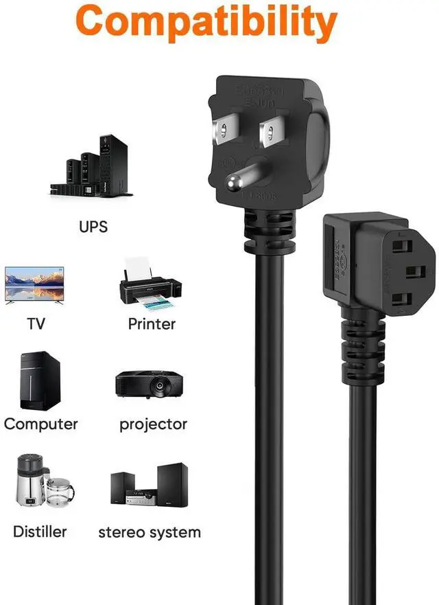 Wide applicability This power cord with a 90-degree angle is a good replacement for most models of PC, UPS, TV, monitors, ceiling mounted projector, guitar amp, scanners, printers, PS4Pro, distiller, stereo system, and more devices that use the 3-pin shroud power connector.