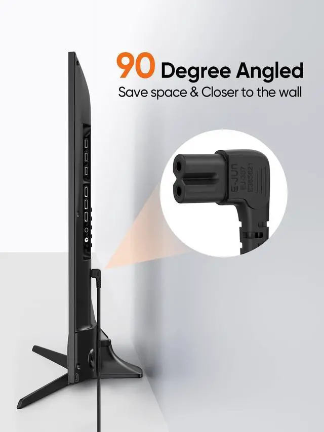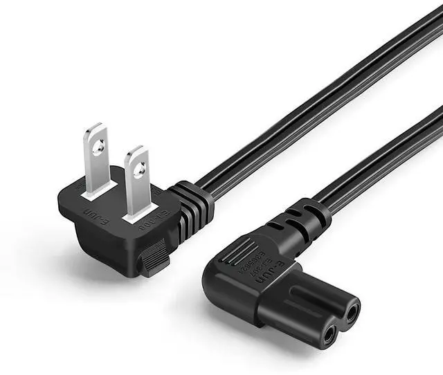 Compatibility: This power cord with a 90-degree angle is an excellent replacement for most models of LED TVs, scanners, printers, projectors, PCs, powered speakers, Sound Bars, and gaming consoles that have a 2-prong figure 8 shotgun power connector.