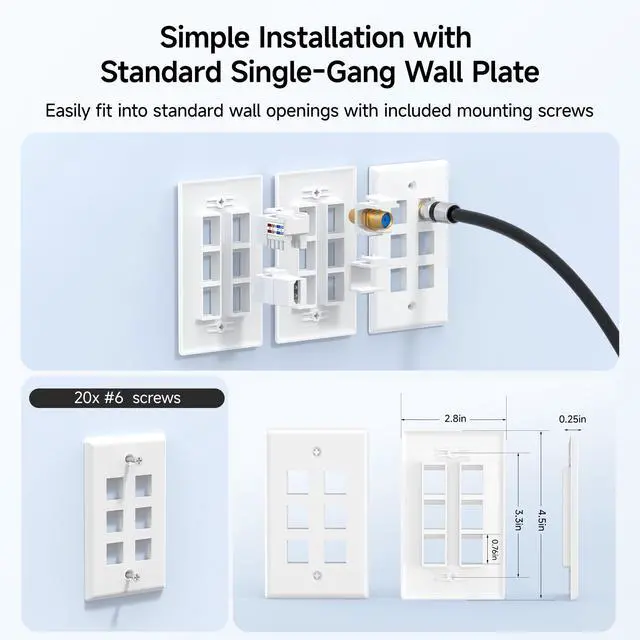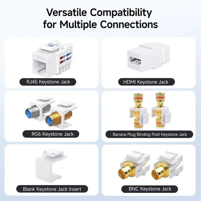 Cost-Effective 10-Pack: This 10-pack of keystone insert wall plates is perfect for home renovations, office upgrades, or multiple installations. Get enough faceplates to meet your needs while saving on costs, making it ideal for larger projects.