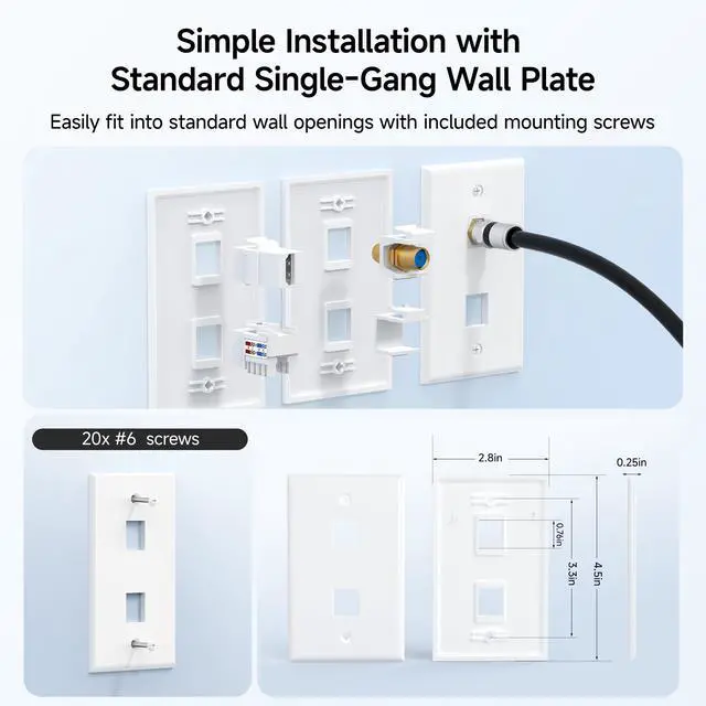 Cost-Effective 10-Pack: This 10-pack of Ethernet wall plates (keystone wall plates) is perfect for home renovations, office upgrades, or multiple installations. Get enough faceplates to meet your needs while saving on costs, making it ideal for larger projects.