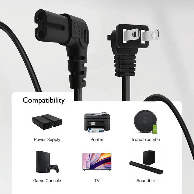 Multi-Functional: This Nema 1-15 to IEC320 C7 TV Power Cord is designed for devices requiring a standard 120 Amps 2-slot non-polarized connection.