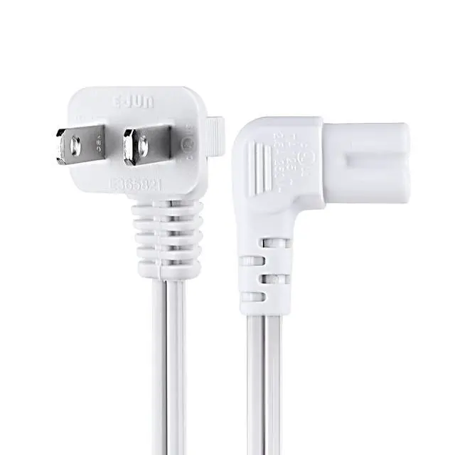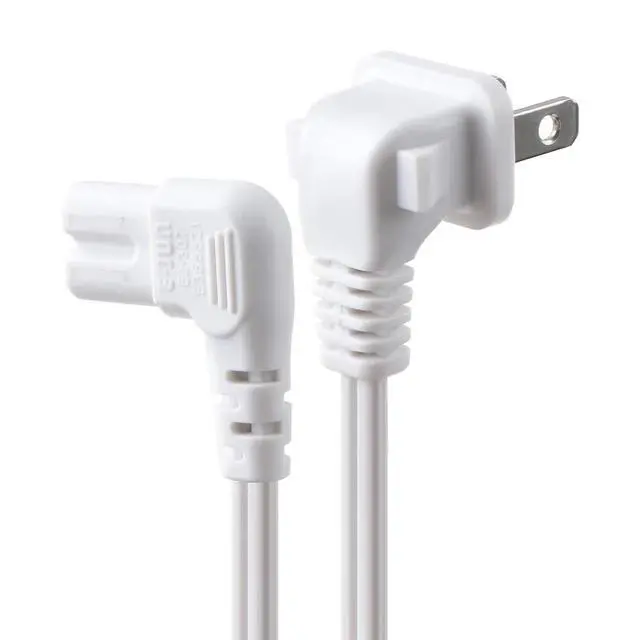 Replacement C7 power cord with a 90-degree angle suitable for most models of scanners, printers, LED TV monitors, projectors, powered speakers, laser printers, and more that feature a removable power cord and use the 2-prong figure 8 shotgun power connector.