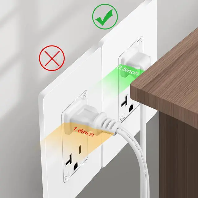 The 90-degree angle plug design saves space; when plugged into the wall plate, the minimum distance is only 0.8 inches.