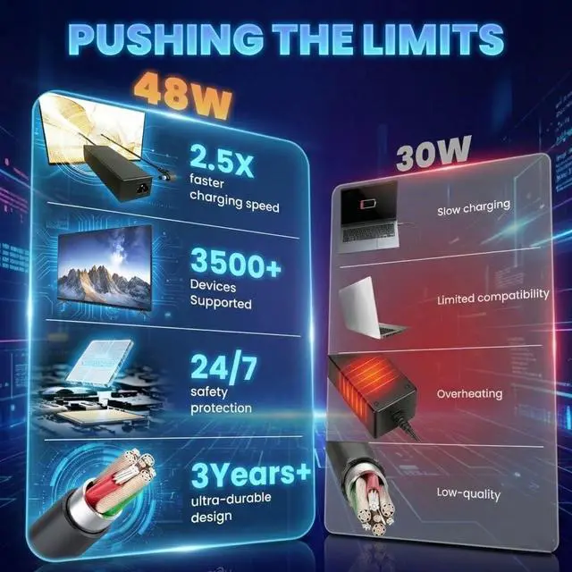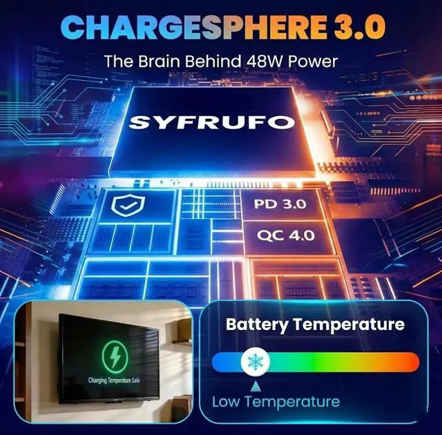 Safety & DurabilityCertified Safety: Built-in IC chip safeguards against Over-Heating, Short-Circuit, and Over-Voltage. The 8ft total cord length (AC+DC) offers flexibility for wall-mounted TVs.