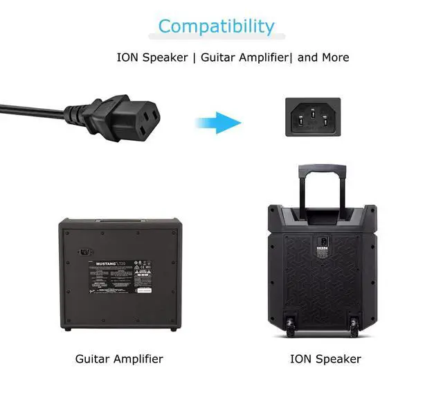 Also works with: Guitar Amplifier Musical Amp --- Electric Guitar Amplifier, and More Devices Requiring 3 Slot Power Cord (Please Check the Connector Picture).