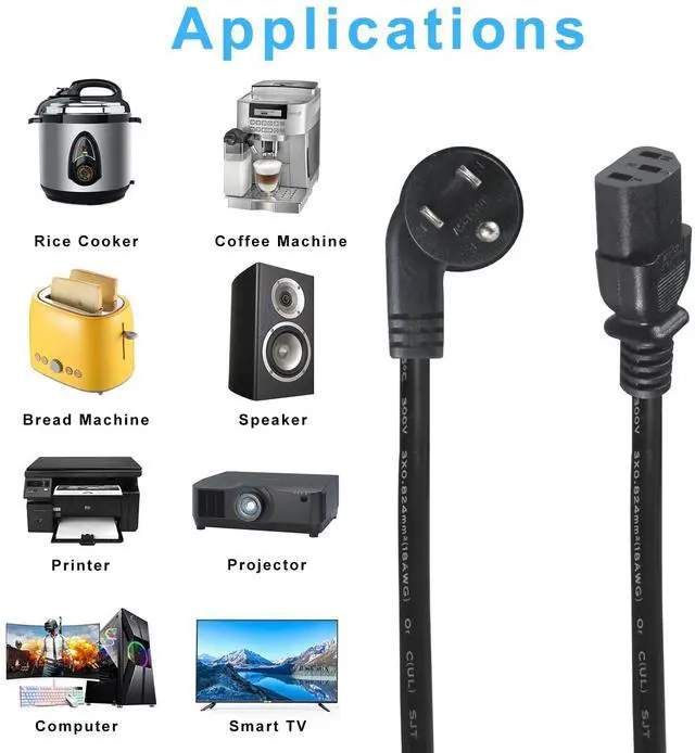 High Quality Power CableStandard 3 prong SJT 18AWG power cable supports common equipment power requirements in the home or office; Fully molded strain relief connectors with easy-grip features provide a snug and secure connection.