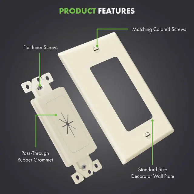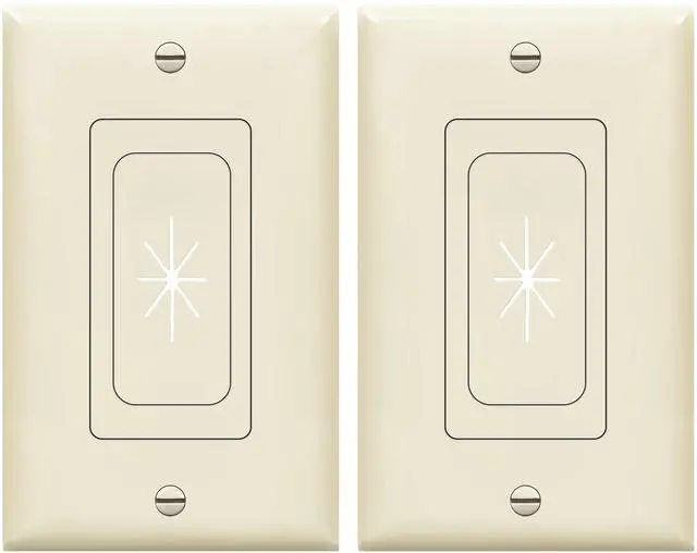 Flexible Rubber Wall Grommet Insert with Decorator Wall Plate, Pass Through Plate for Low-Voltage Cables, Standard Size, 1-Gang, 4.50" x 2.75," Light Almond, 2 Pack