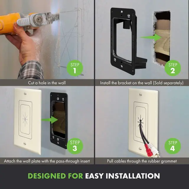 • The perfect solution for running low-voltage audio or video cables through walls to flat panel TVs, gaming systems, or home theatre systems.