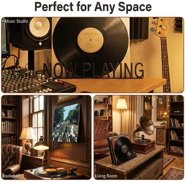 Metal Now Playing Vinyl Record Stand Wall Mount Album Player Display LP Shelf Black modern Vintage Vinyl Record Display Organization for Music Lovers Record Player Accessory