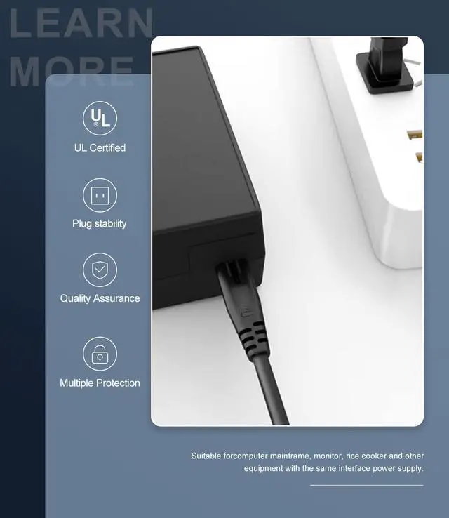 [Safe Use]: The power cord is made of thickened PVC material, waterproof and wear-resistant. After more than 10,000 bending tests, it has good electrical conductivity and stability, tensile strength, strong safety, and long service life.