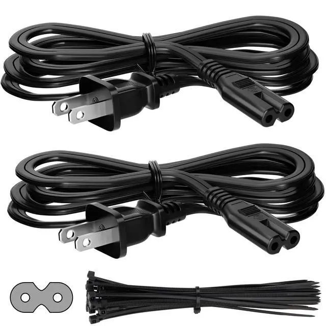 2 Prong Power Cord 6 FT (2-Pack), Non-Polarized AC Power Replacement Supply Cable, 7A, 125V, ETL Compatible, Xbox, Laptop, Printer, C7 to 1-15P, with 25 Ties