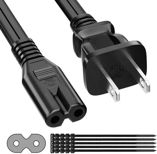 Universal Compatibility: The Figure 8 2-slot AC power cord is compatible with 2-slot AC power sockets for various devices, including TVs, gaming consoles, LED lights, printers, sound bars, and more.