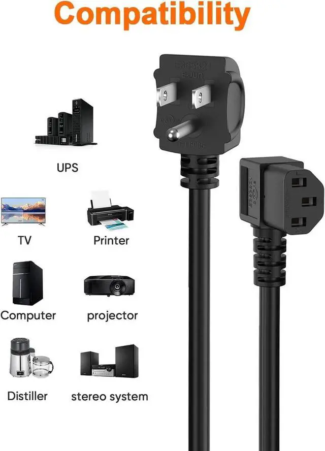 Wide applicability The 90-degree angle power cord is a suitable replacement for various devices such as PC, UPS, TV, monitors, ceiling-mounted projectors, guitar amps, scanners, printers, PS4Pro, distillers, stereo systems, and more that utilize the 3-pin shroud power connector.