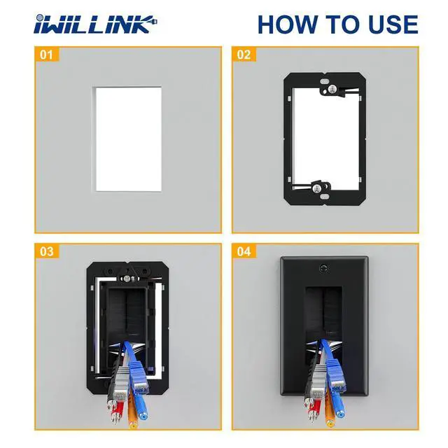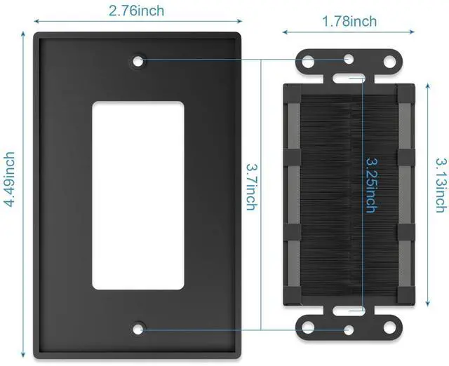 Easy to Install: The single gang low voltage mounting bracket adjusts to fit wall board, paneling, or drywall ranging from 1/4-inch to 1-inch in thickness. Wall plates mount flush against the wall. Simply insert the brush into the outer casing and place it on the wall, allowing for easy cable access.