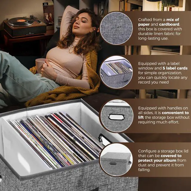Reliable and SturdyThis album storage for vinyl records is built to last. The selection of high-density cardboard and durable fabric ensures its durability. You can fully rely on this sturdy record storage box to provide excellent care and protection for your cherished collection. Its solid construction safeguards your records from any harm, allowing you to enjoy your music with peace of mind.