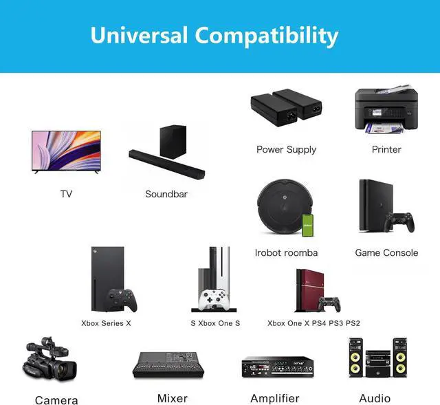 • Compatible with LED TVs from various brands, printers, and gaming consoles including PS5, PS4, PS3 Slim, and Xbox One SX.
