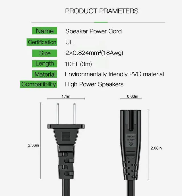 Power Cord Type 2-Slot, 18 AWG, 125V 7A, 10FT, designed with wear resistance, temperature resistance, and tensile strength. It effectively avoids line interference and provides more stable signal transmission.