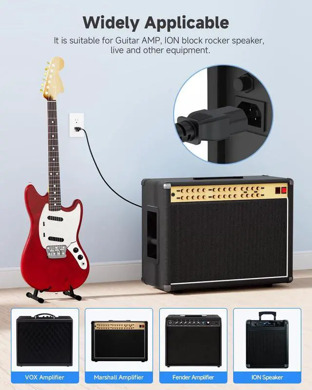 Wide Compatibility: Fits various amplifiers such as PC AC amplifiers, combo amplifiers, and speaker systems with a 3-prong connection.