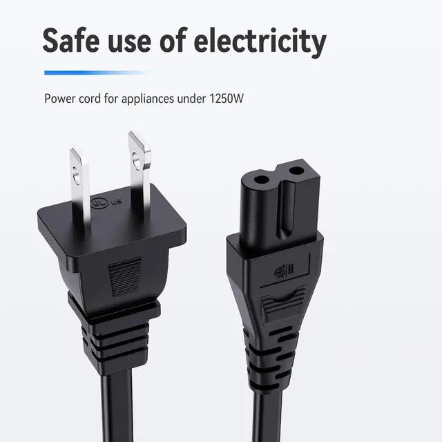Power Cord Type: 2-Prong Polarized, 18 AWG x 2C, 125V-10A Max. Length: 6 Feet