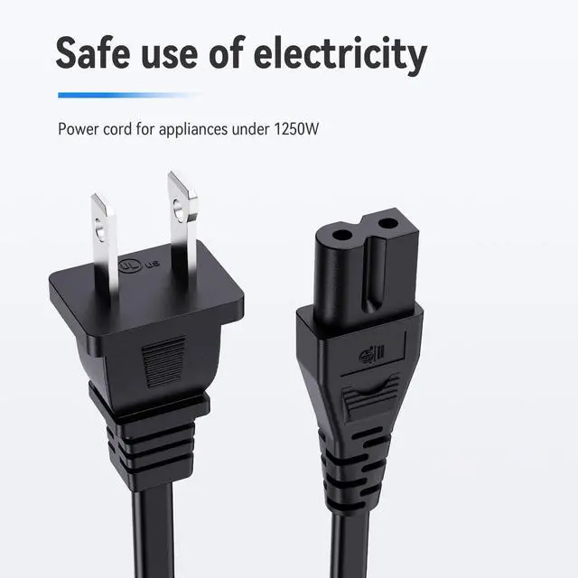 Power Cord Type: 2-Prong Polarized, 18 AWG x 2C, 125V-10A Max. Length: 10 Feet