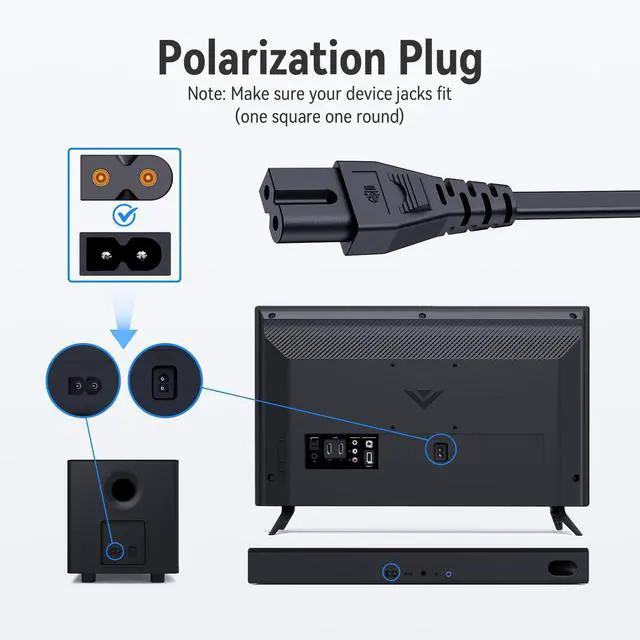 Compatible With: Vizio D/E/M Series LED Smart TVs and Sound Bars. (Check Connector Photo).