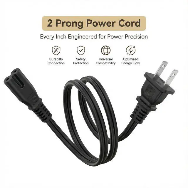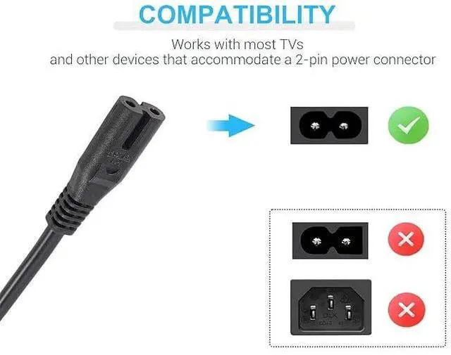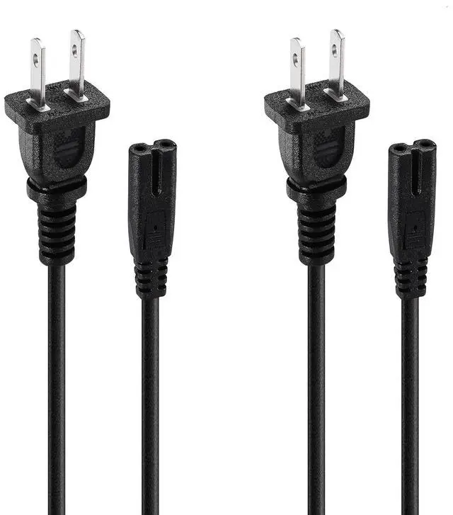 2 prong Figure 8 AC Power Cord (IEC320 C7 to NEMA 1-15P), works for: Game Consoles, LED LCD TV, Monitor, Sound Bar, Printers, and other devices requiring 2 Slot Power cord.