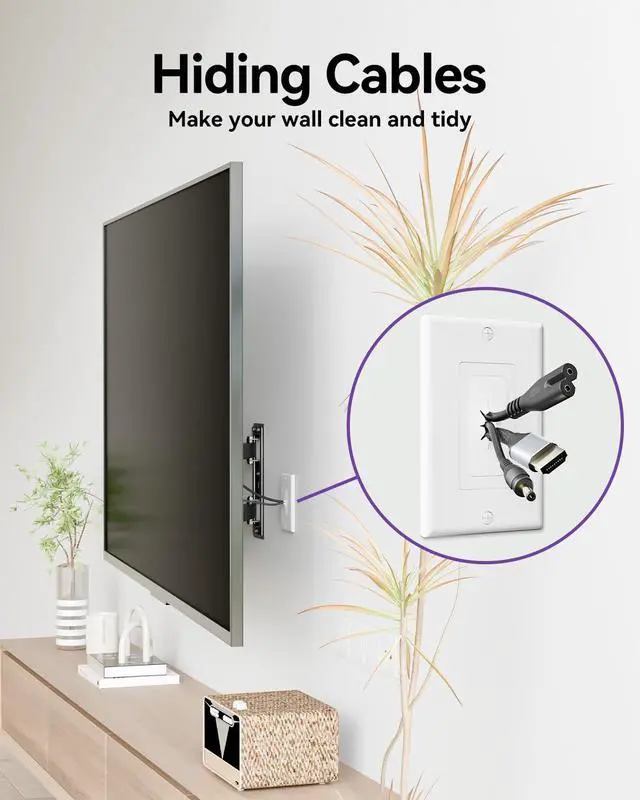 MULTIPLE WIRES PASS THROUGH: Flexible wall plate with rubber opening allows power lines, HDMI cables, coaxial cables, standard A/V cables, speaker wires, network RJ45 cables, and other low-voltage cables to pass through.
