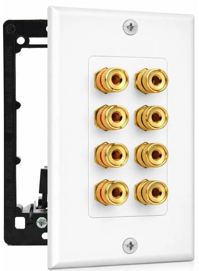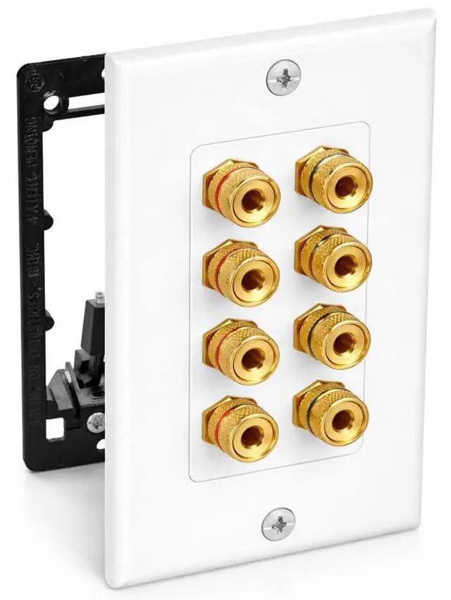 With gold plated binding posts, this speaker wall plate ensures a clean and reliable audio connection, guaranteeing high-quality audio.