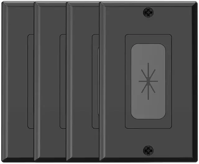 Wall Plate Cable Pass Through, Single Gang Decorator Wall Plate Cover, Flexible Rubber Wall Grommets Insert for Low Voltage Cables, Wall Mount TV, Home Theater System, Black-4 Pack