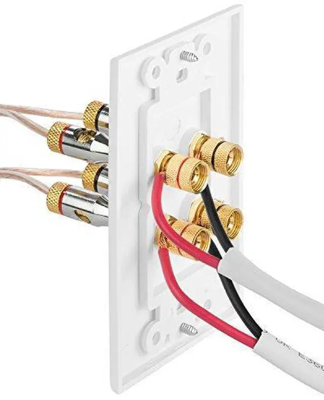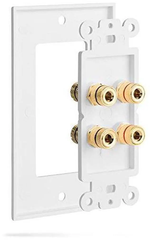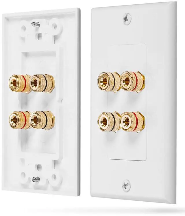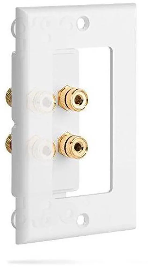 Home Theater Wall Plate - Premium Quality Gold Plated Copper Banana Binding Post Coupler Type Wall Plate (White) (Two Speaker)