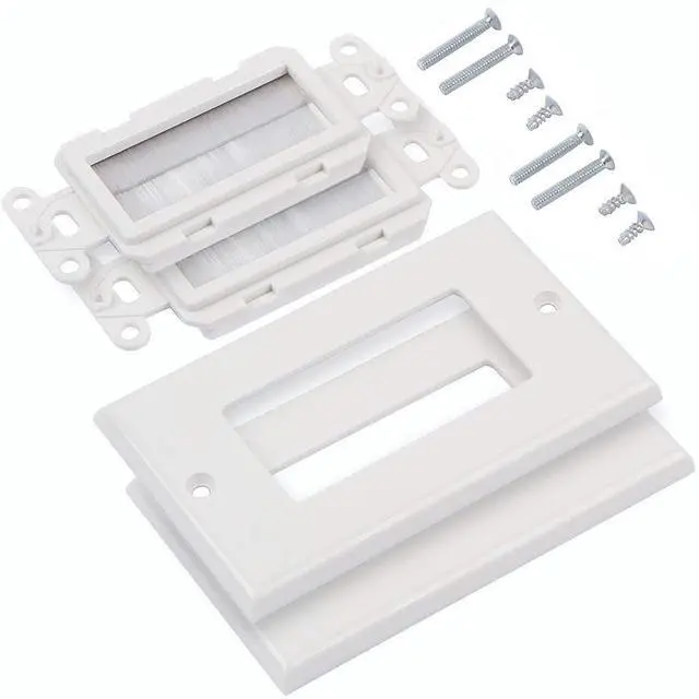 [BRUSH WALL PLATE WITH UNIVERSAL DESIGN] The brush wall plate is universal in size and easy to use. It allows you to run cables neatly and out of sight, giving you a professional look at a fraction of the cost.