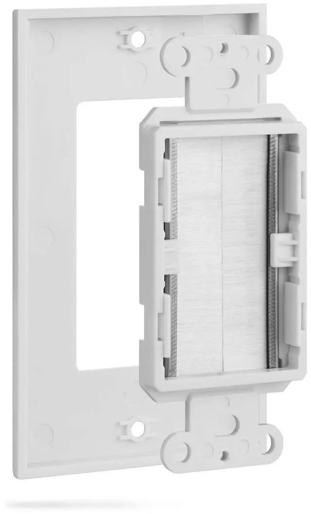 (5 Pack) Single Gang Wall Plate, Brush Style Opening Passthrough Cable Plate with Low Voltage Mounting Bracket
