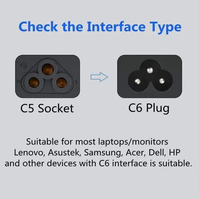 • IEC Plug C14 to Cloverleaf Plug C5 Converter Adapter Cable, C14 C5 power adapter, 3 prong laptop power cord